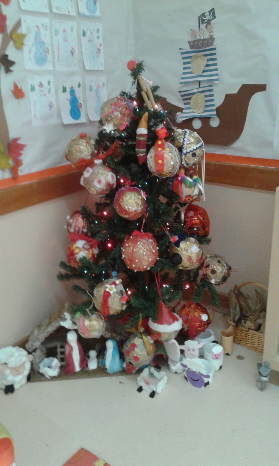 Com a professora de artes fizemos este presépio! Ficou muito bonito!